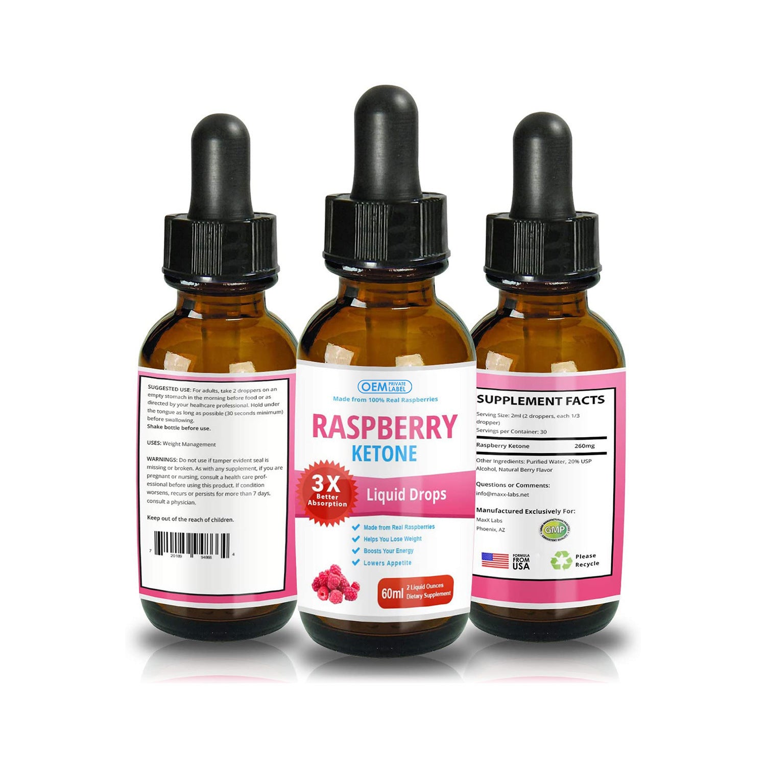 Raspberry Ketone Drops Supplement Vitamin Liquid